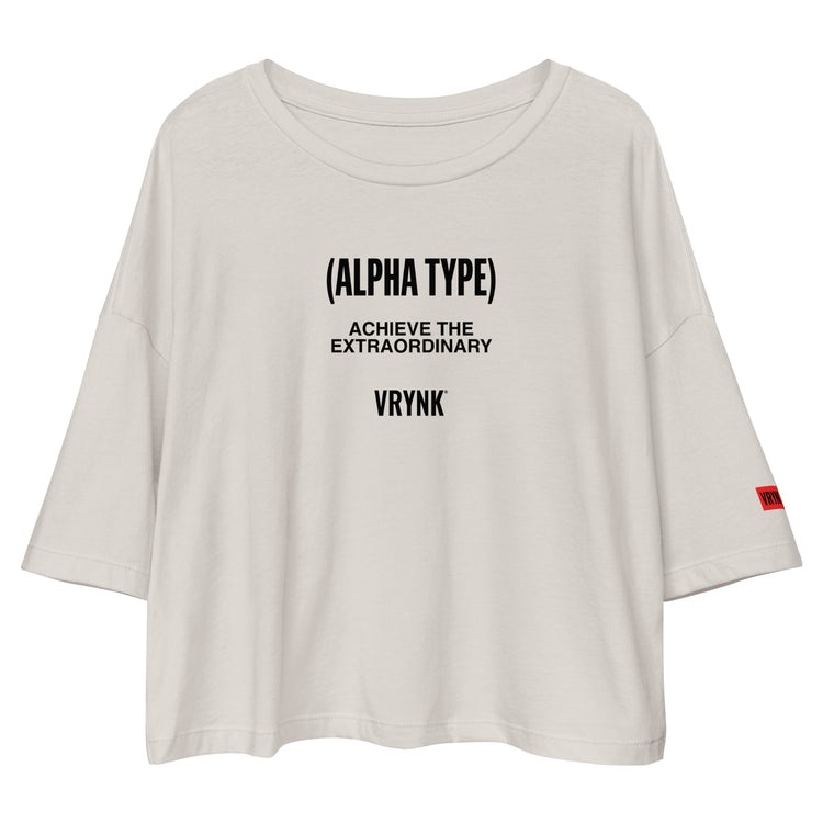 Enjoy a casual outfit with our loose drop shoulder Alpha Type crop top.